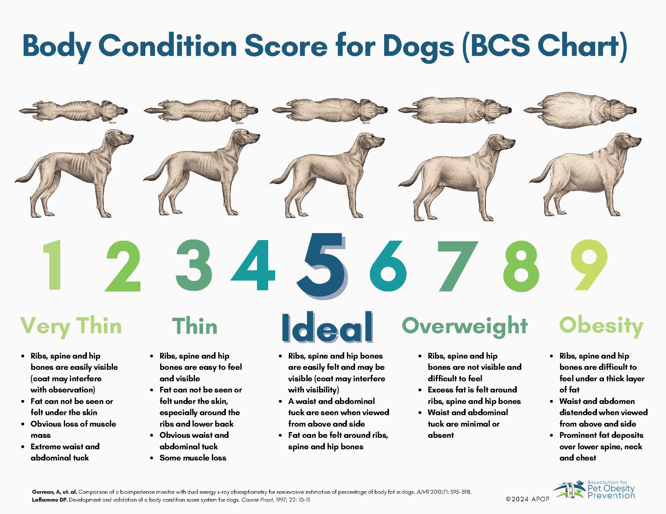 Body condition scoring was developed to solve the problem of there being no standard healthy weight range for dogs, because their size and shape can vary so much.